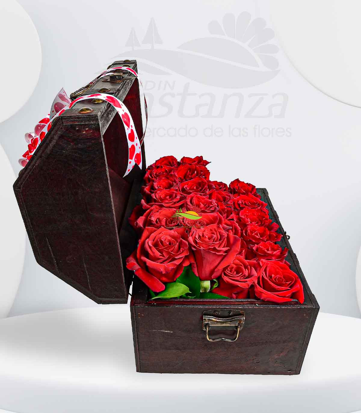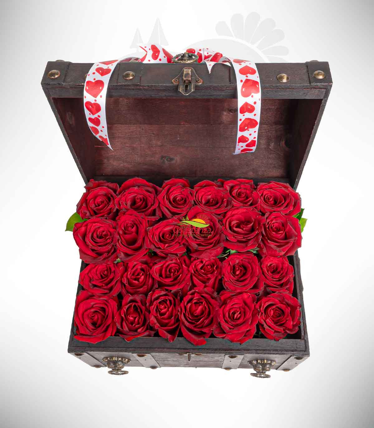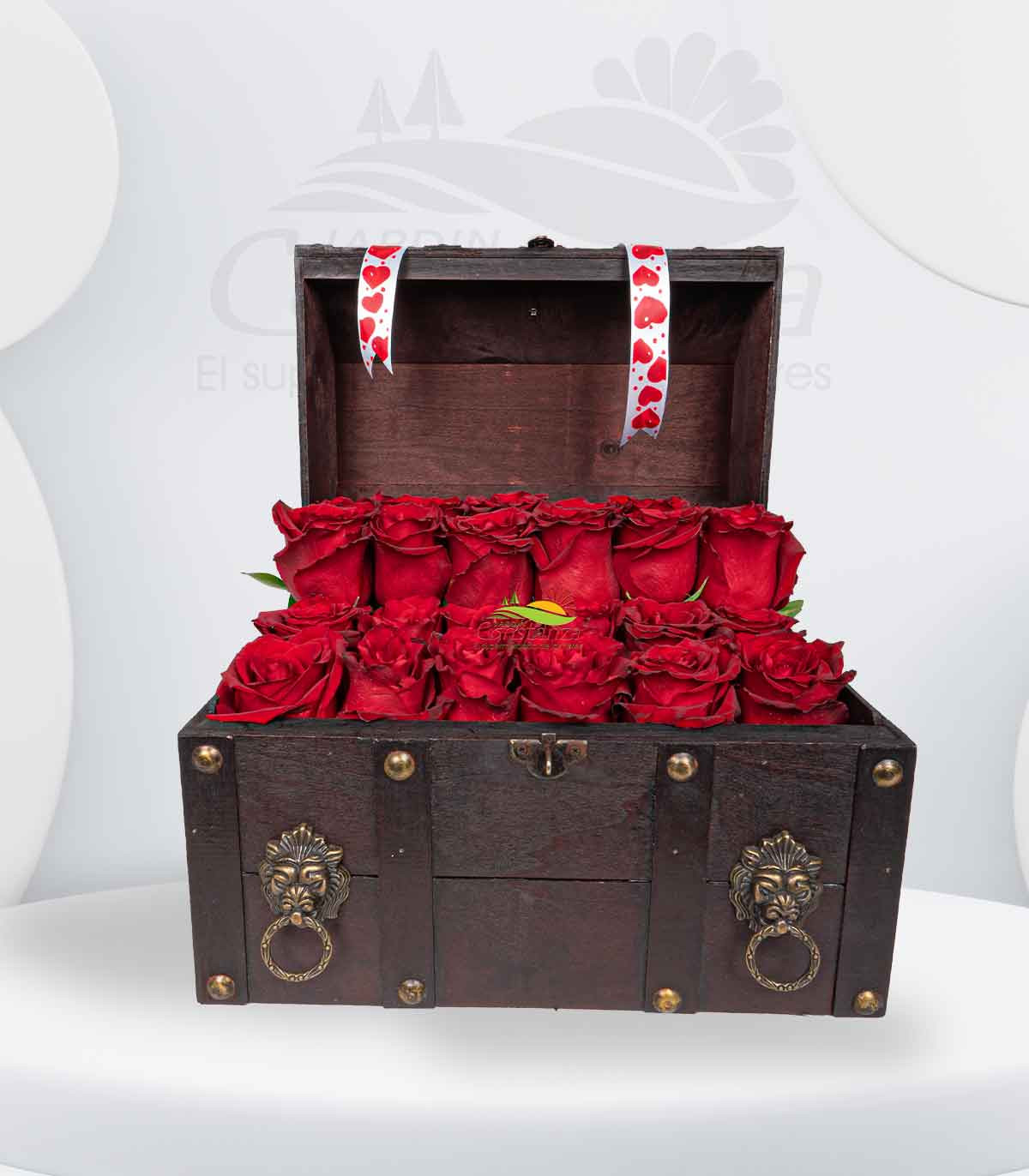 Baúl floral mediano diseñado con 24 rosas importadas de alta calidad, perfecto para quienes buscan un regalo impactante y lleno de significado 🌹.