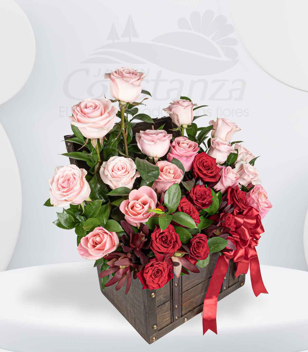Diseñado con 25 rosas importadas, acompañadas de finos complementos, logra una combinación armoniosa que transmite romanticismo, pasión y delicadeza al mismo tiempo.