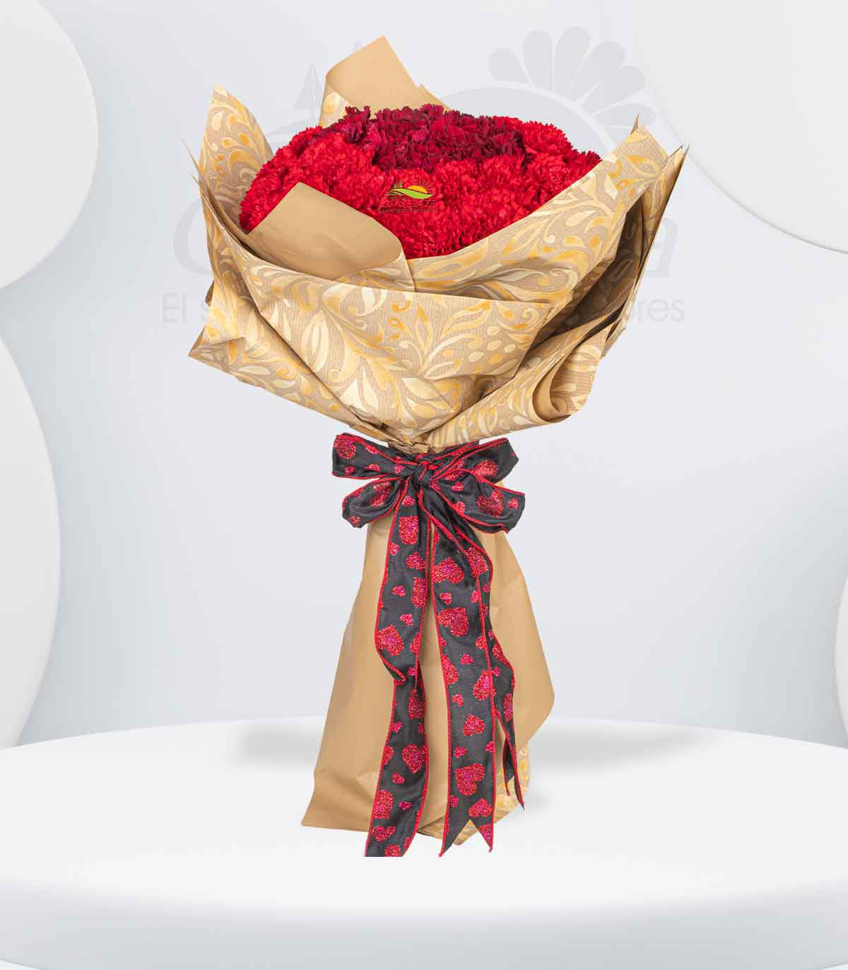 Un hermoso bouquet elaborado con 75 unidades de claveles importados en combinación con delicados complementos verdes y florales, creando un diseño fresco, elegante y lleno de color. Perfecto para regalar en cualquier ocasión especial o para alegrar el día de alguien querido. 🌸✨