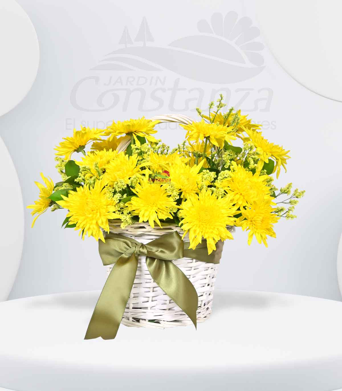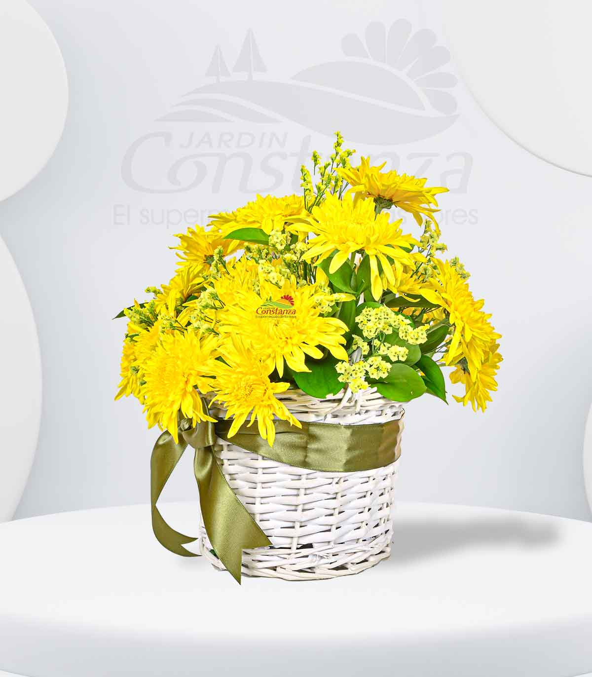 Un detalle fresco y radiante: margaritas amarillas en una encantadora canasta con diseño arañita, llenando de alegría y luz cualquier espacio. Su estilo sencillo y natural la convierte en el regalo perfecto para transmitir optimismo, amistad y buena energía. 🌼