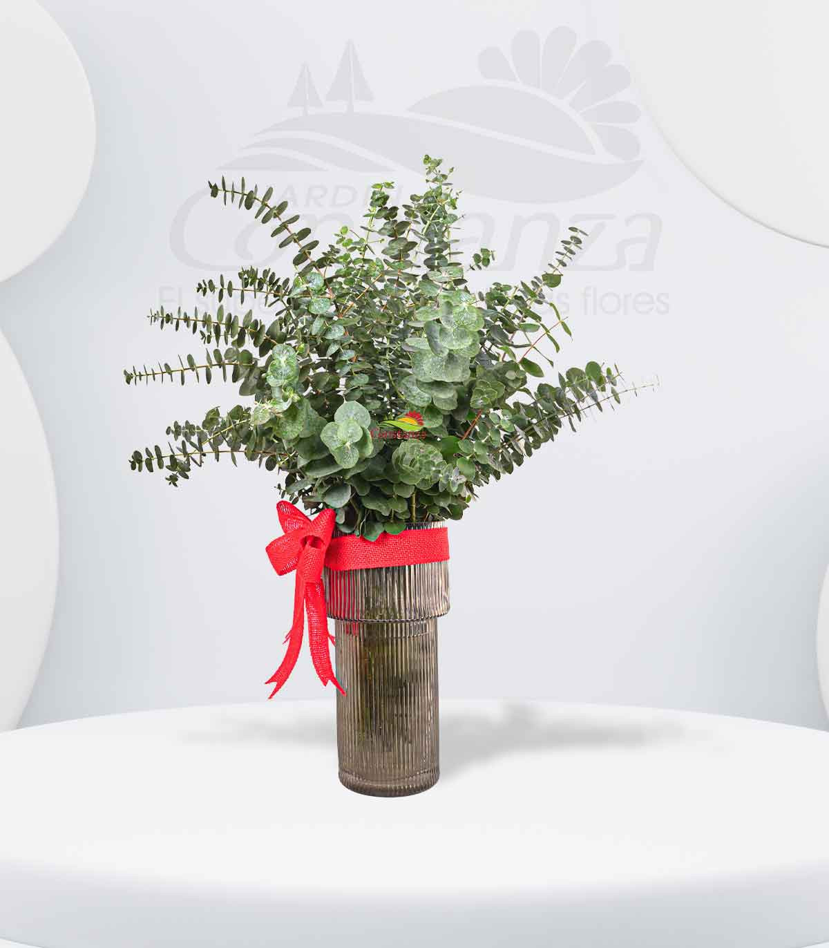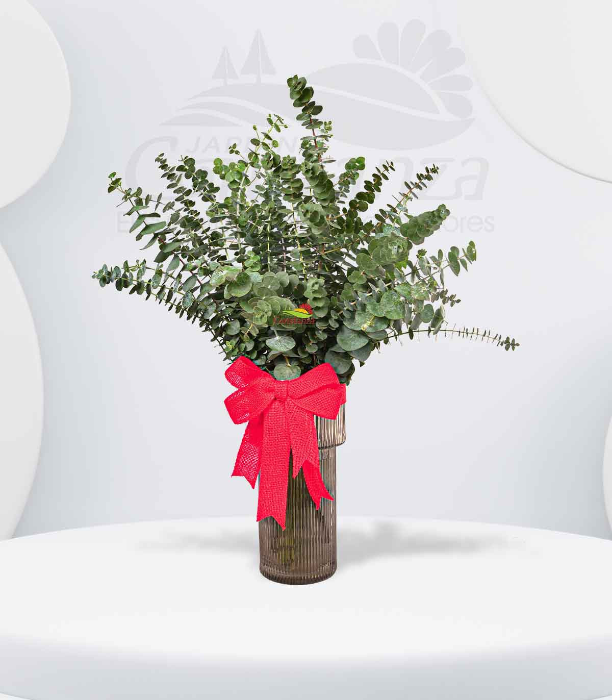 Un detalle delicado y elegante: cristal fino, ramas frescas de eucalipto y un lazo cuidadosamente elaborado que convierte este diseño en el regalo perfecto para aromatizar, decorar y transmitir calma.