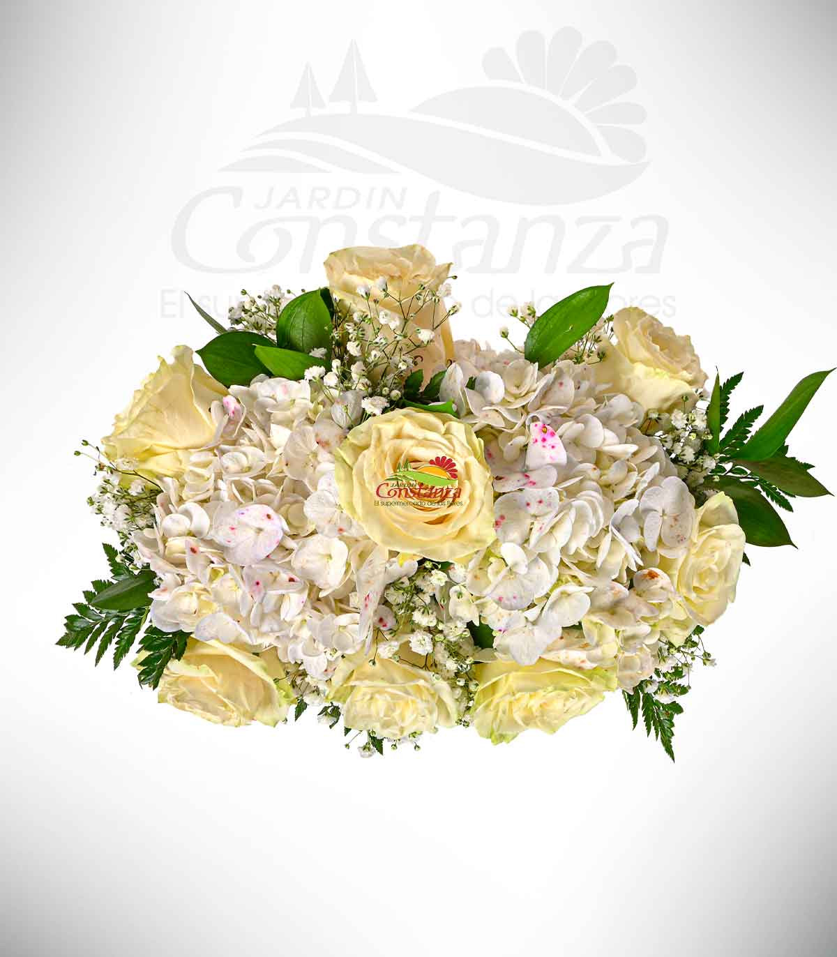 8 rosas, 2 hortensia y complementos