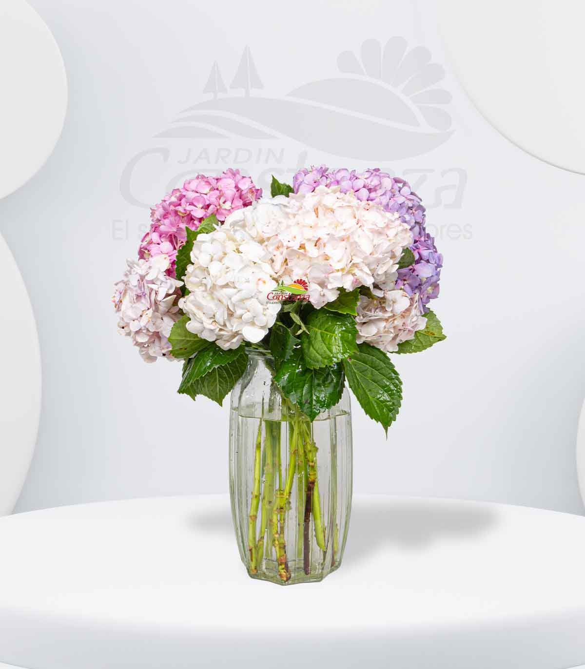 Este arreglo en base de cristal celebra la elegancia de las hortensias, con sus voluminosas flores que simbolizan gratitud, belleza y abundancia. Sus tonos suaves y textura esponjosa crean una atmósfera de serenidad y dulzura, ideal para regalar en momentos especiales o para llenar de encanto cualquier espacio del hogar.